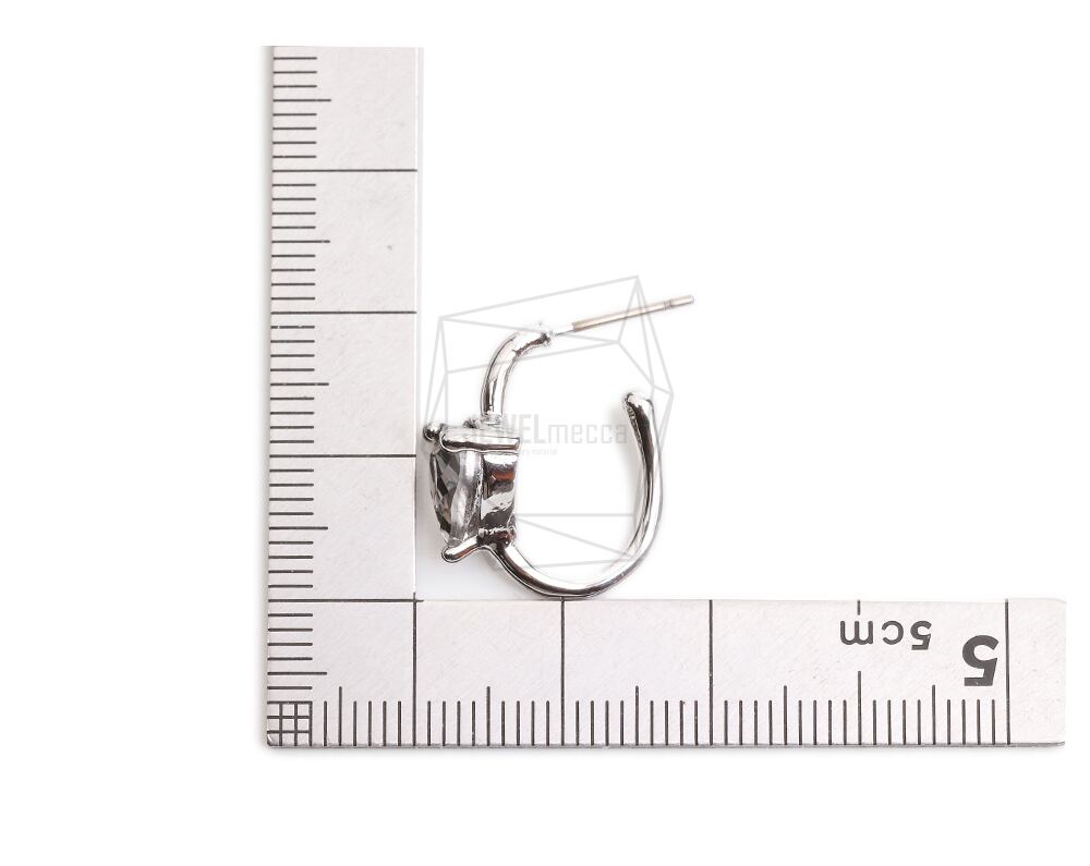 ERG-2328-R/2Pcs-Triangle Glass Post Earring/9.2mm x 19.2mm /Rhodium Plated over Brass.Titanium post