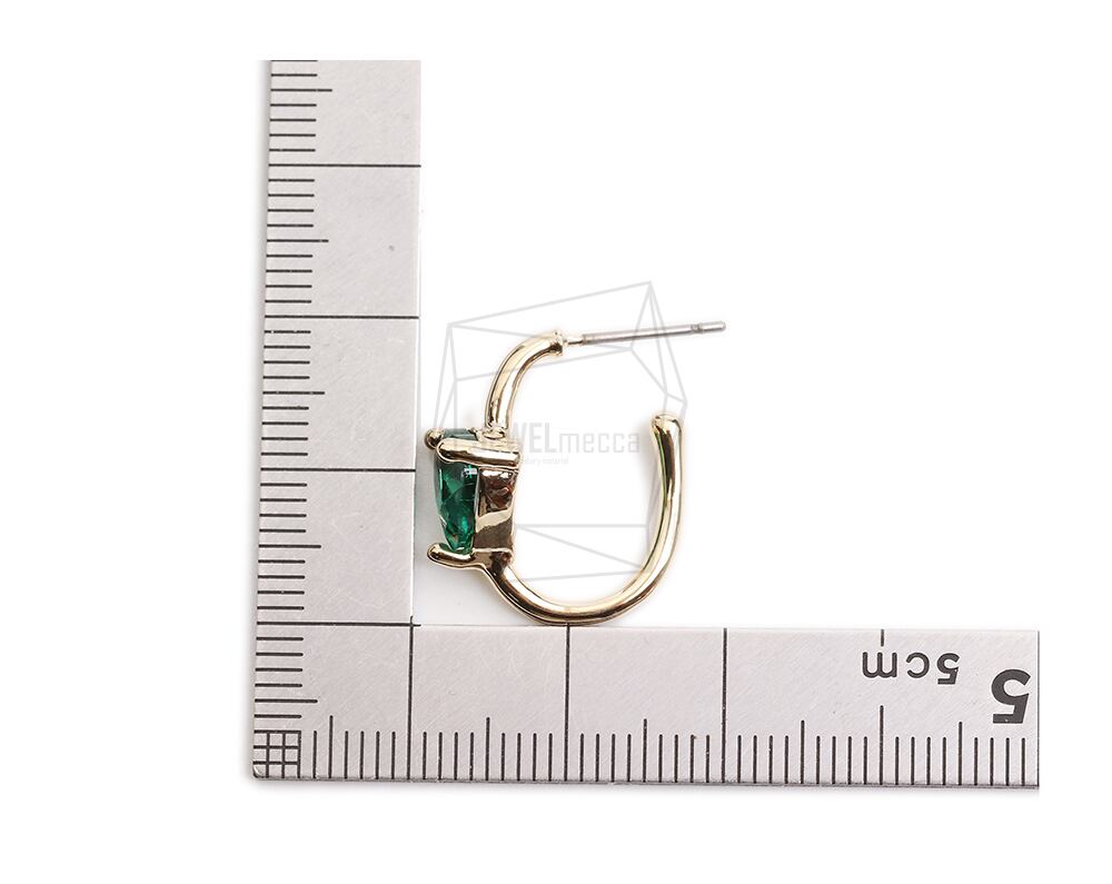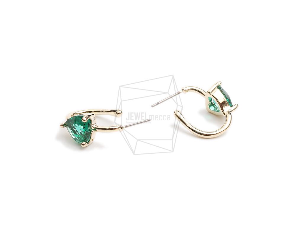ERG-2329-G/2Pcs-Triangle Glass Post Earring/9.2mm x 19.2mm /Gold Plated over Brass.Titanium post