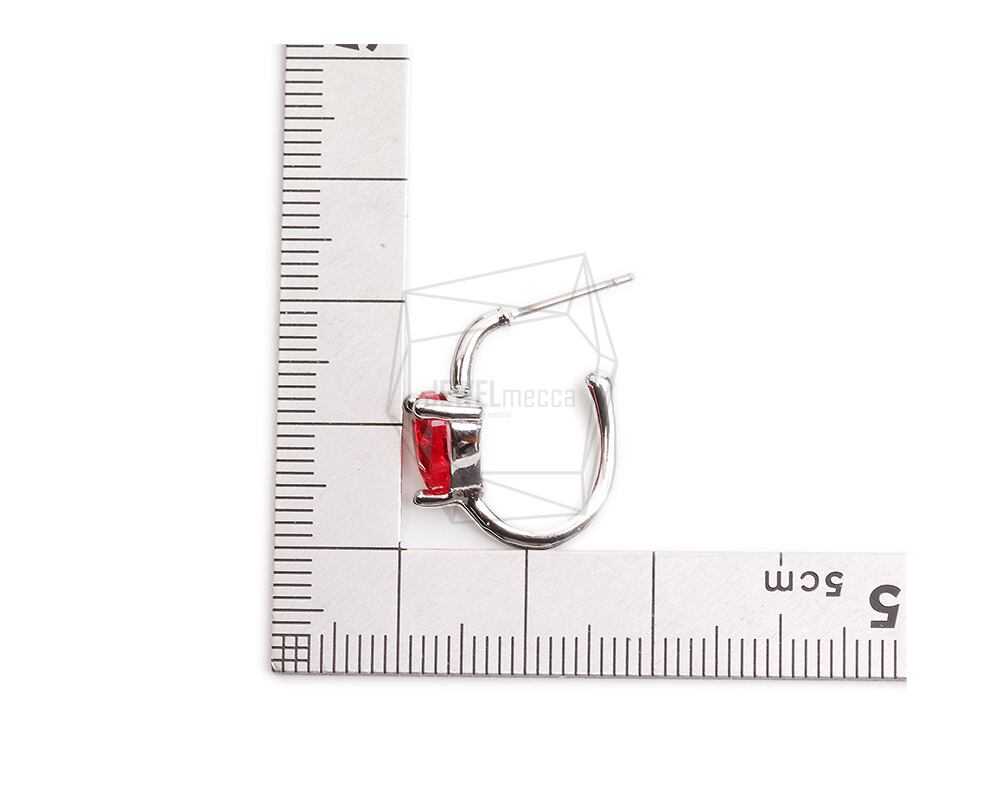 ERG-2330-R/2Pcs-Triangle Glass Post Earring/9.2mm x 19.2mm /Rhodium Plated over Brass.Titanium post