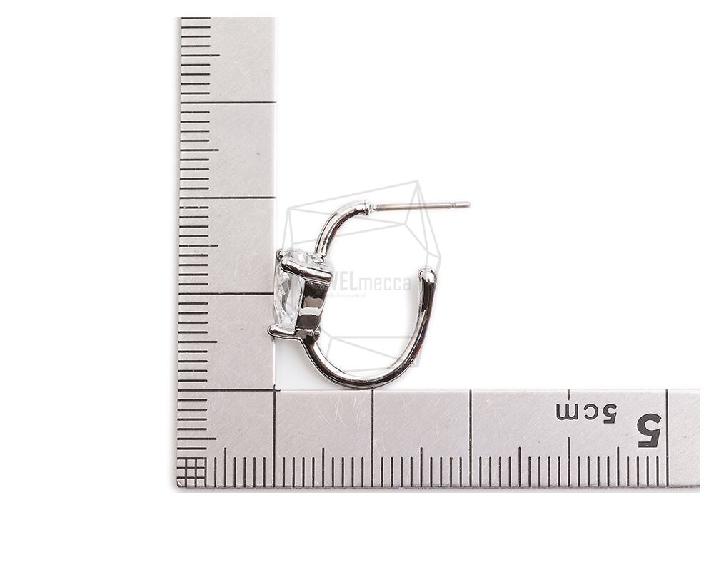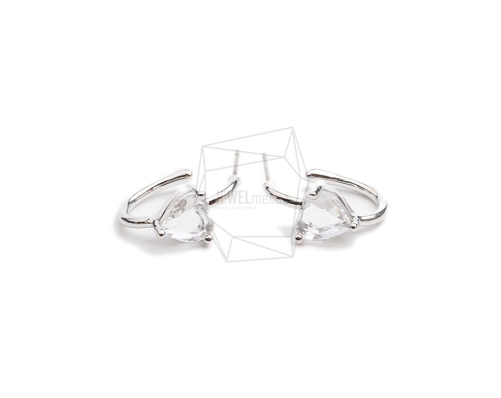 ERG-2331-R/2Pcs-Triangle Glass Post Earring/9.2mm x 19.2mm /Rhodium Plated over Brass.Titanium post