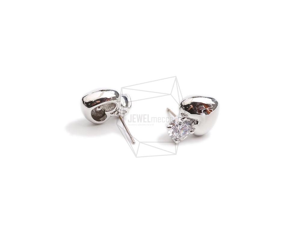 ERG-2334-R/2Pcs-Heart Cubic Post Earring/11.3mm x 15.6mm /Rhodium Plated over Brass,Titanium post ,CZ