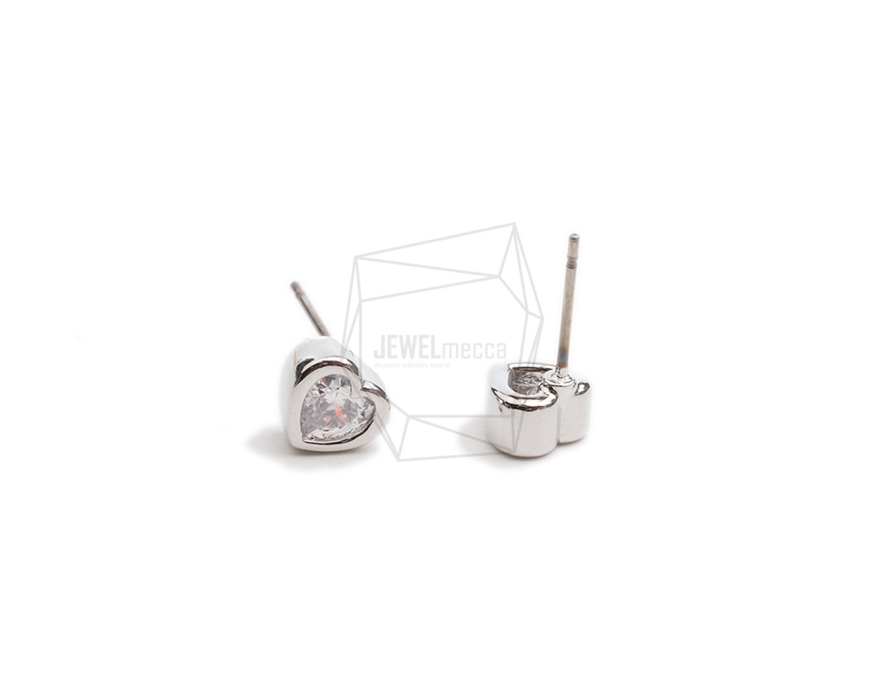 ERG-2335-R/2Pcs-Heart Cubic Post Earring/6.9mm x 7.5mm /Rhodium Plated over Brass,Titanium post ,CZ
