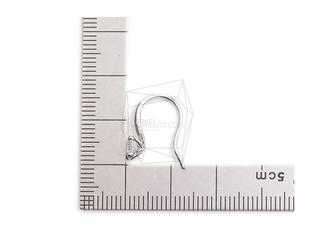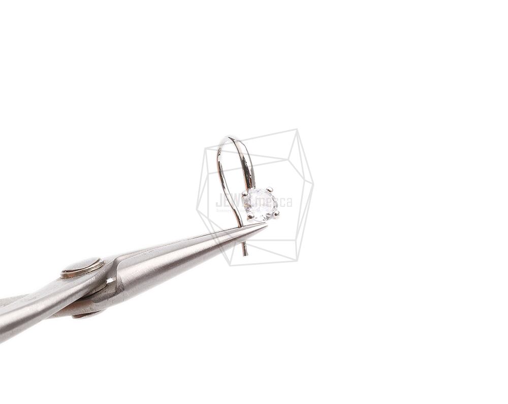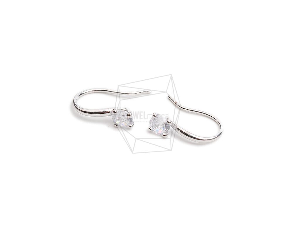 ERG-2337-R/2PCS/Simple CZ Stone Hook Earring/5mm x 18.5mm /Rhodium Plated Over Brass
