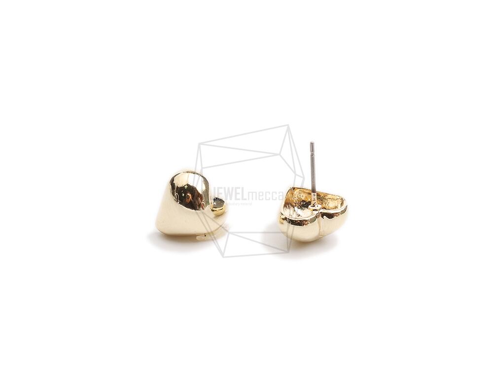 ERG-2338-G/2Pcs-Heart Ear Post/ 11.5mm x 12mm/Gold Plated over Brass,Stainless Post