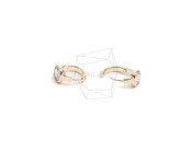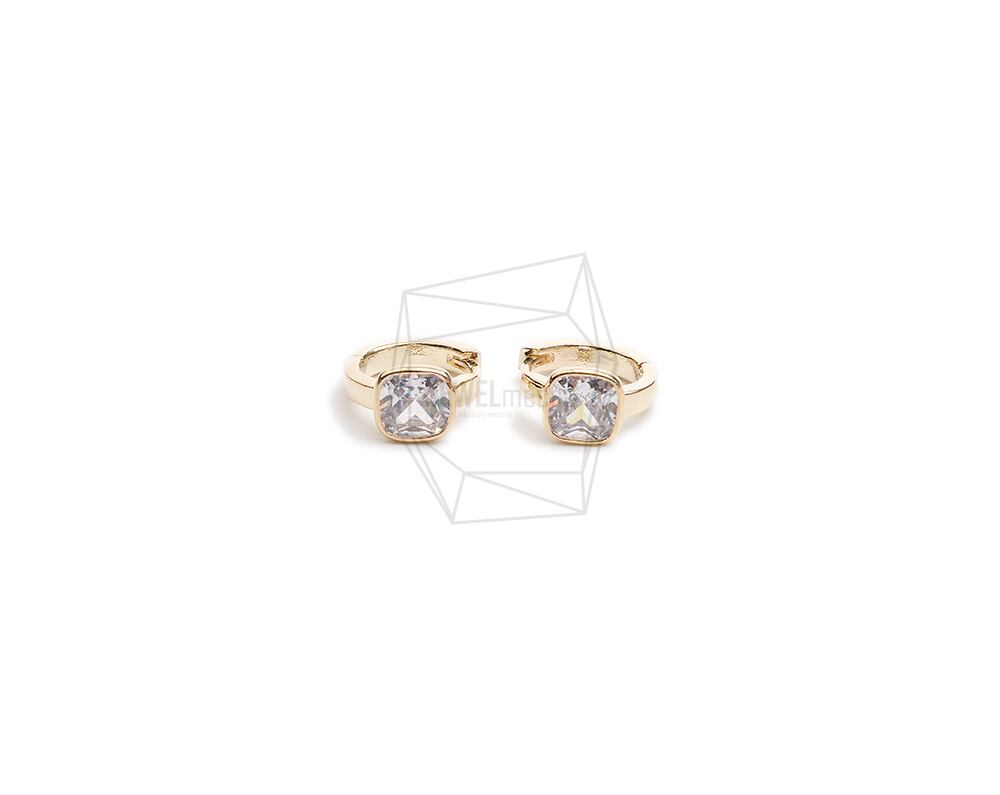 ERG-2340-G/2PCS/Round CZ One touch Post Earring/11.7mm X 13.7mm/Gold Plated Over Brass,CZ