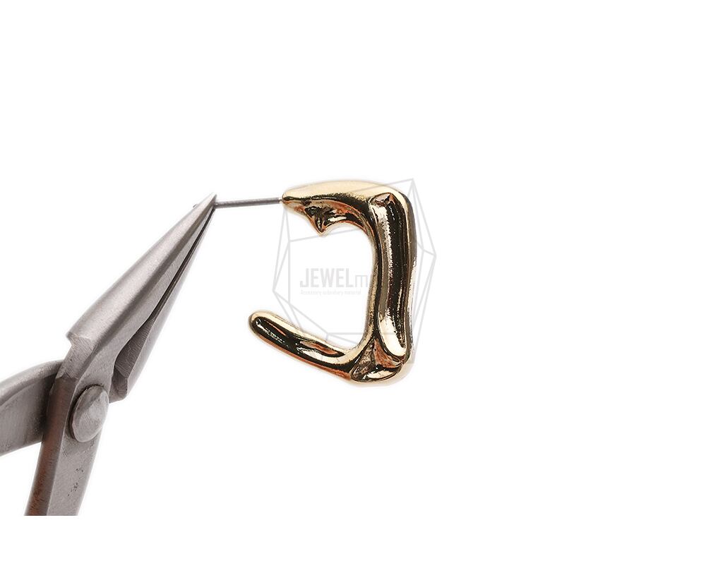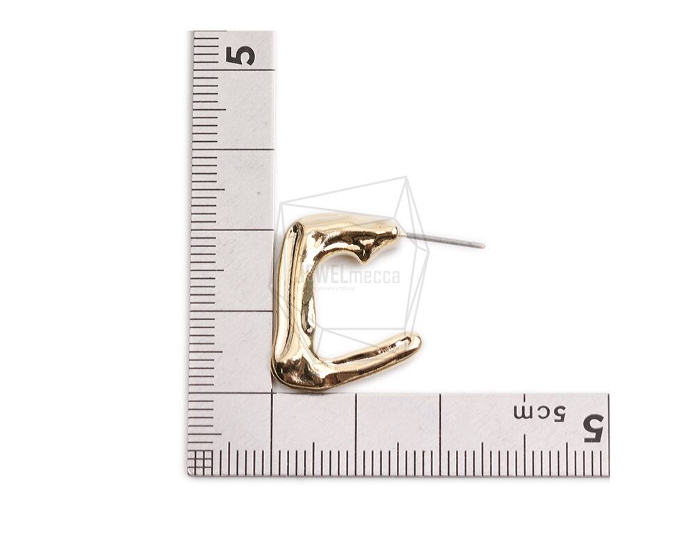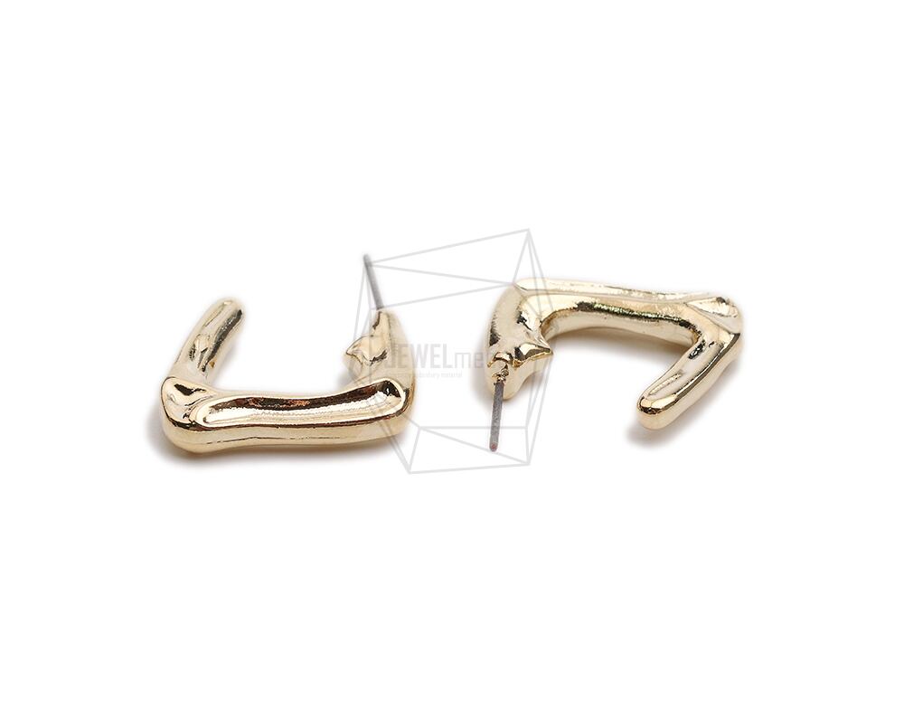 ERG-2341-G/2PCS/L shape post Earring/18mm x 22mm/Gold Plated Over tin/Stainless Post