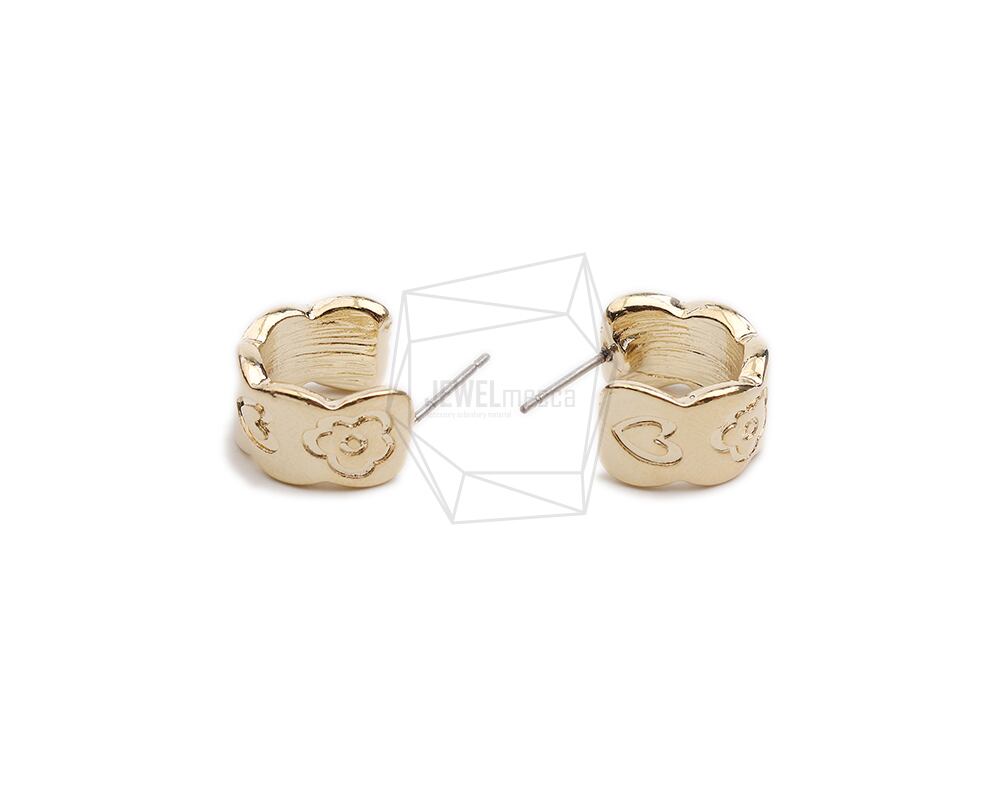 ERG-2343-G/2PCS/Round Post Earring/12.5mm X 15mm/Gold Plated Over Tin,Stainless Post