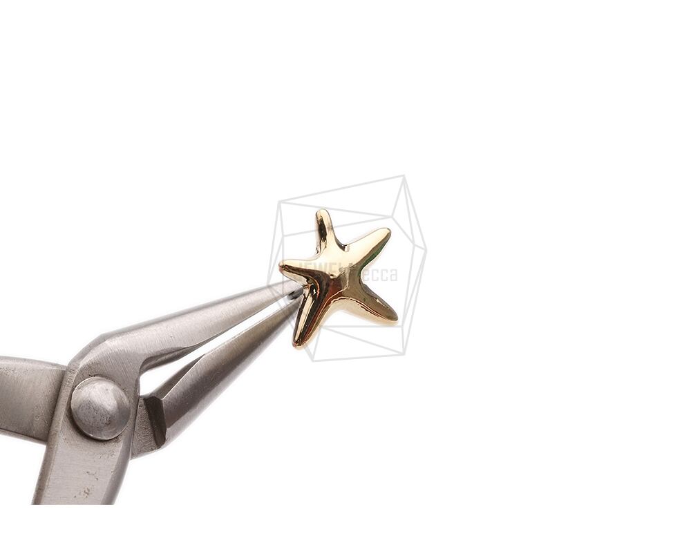 ERG-2345-G/2Pcs-starfish Ear Post/ 14mm x 16.6mm /Gold Plated over Tin/Stainless Post