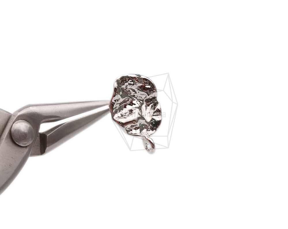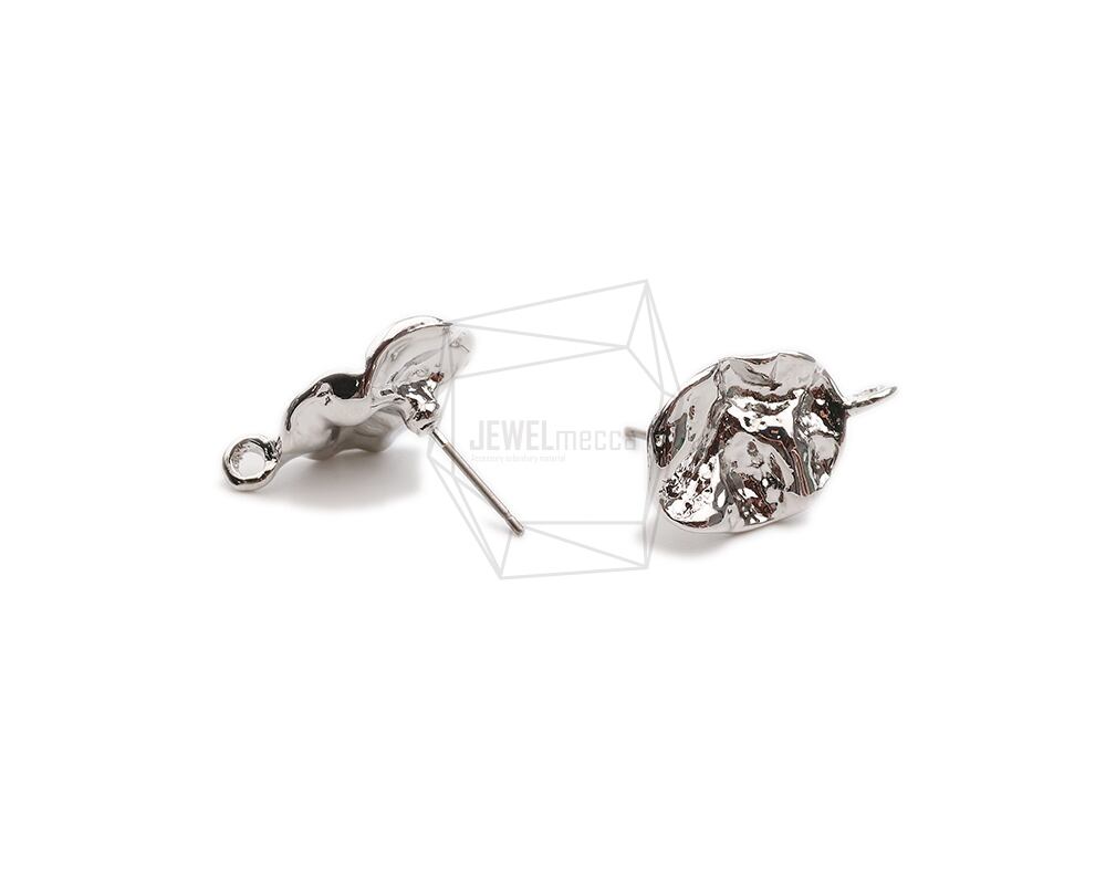 ERG-2347-R/2PCS/Hammered Earring /13mm x 21mm/Rhodium Plated Over Tin/Stainless Post