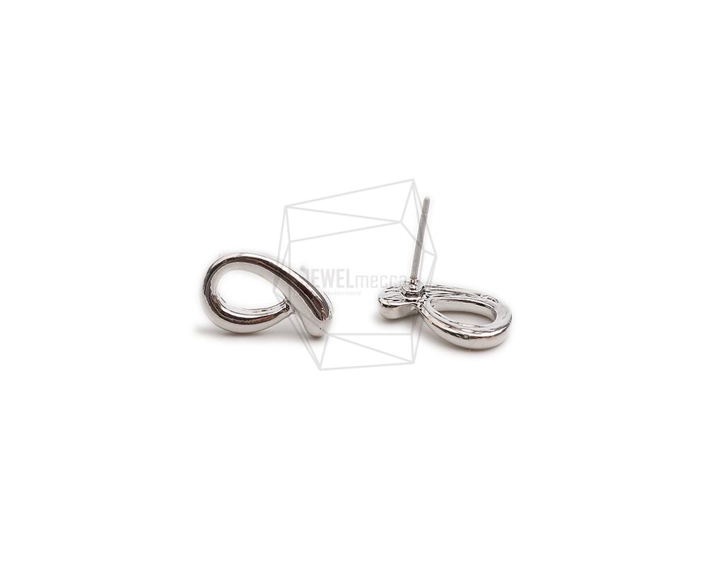 ERG-2350-R/2PCS/Rope Ribbon Earring/9.4mm X 14.9mm/Rhodium Plated Over Tin,Stainless Post