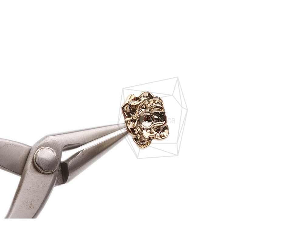 ERG-2358-G/2PCS/Flower Post Earring/12.5mm X 14.2mm/Gold Plated Over Tin,Stainless Post