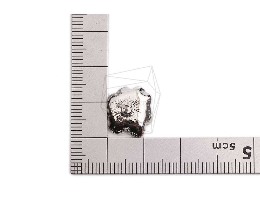 ERG-2358-R/2PCS/Flower Post Earring/12.5mm X 14.2mm/Rhodium Plated Over Tin,Stainless Post