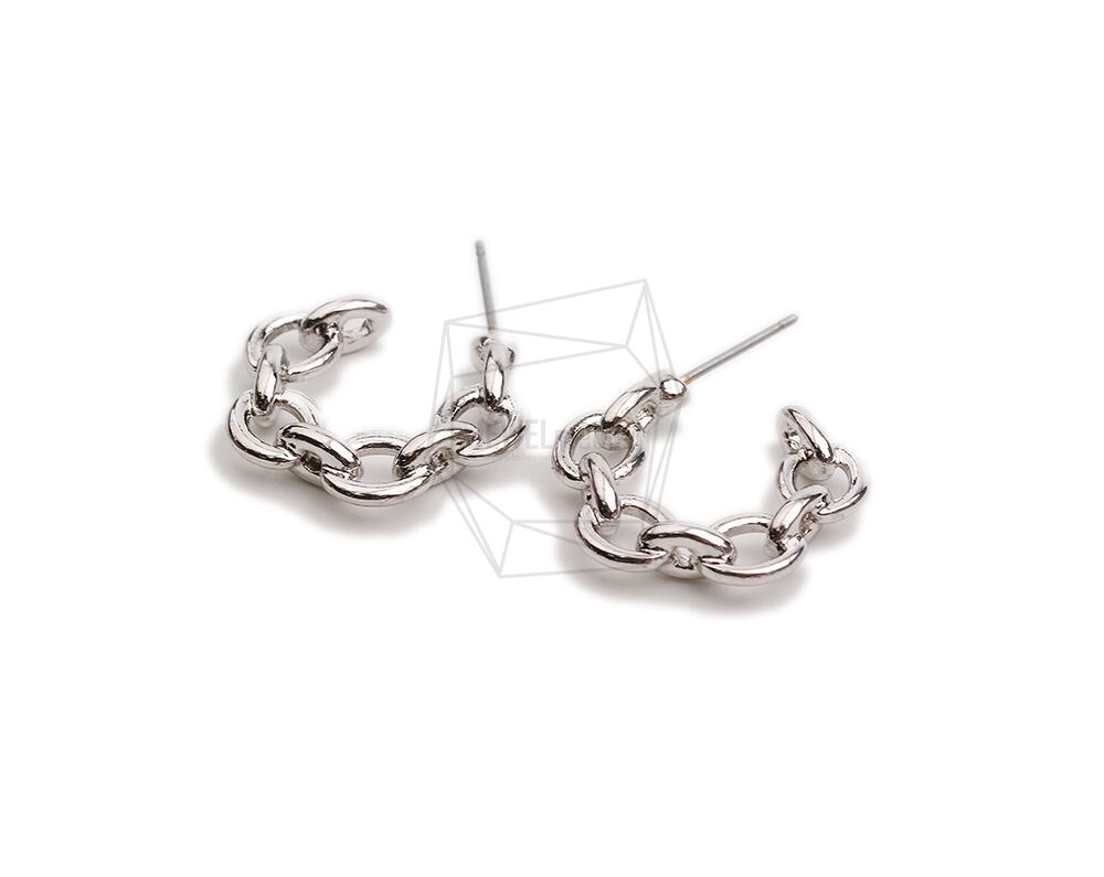 ERG-2360-R/2PCS/Round Post Earring/18.6mm X 21mm/Rhodium Plated Over Tin,Stainless Post