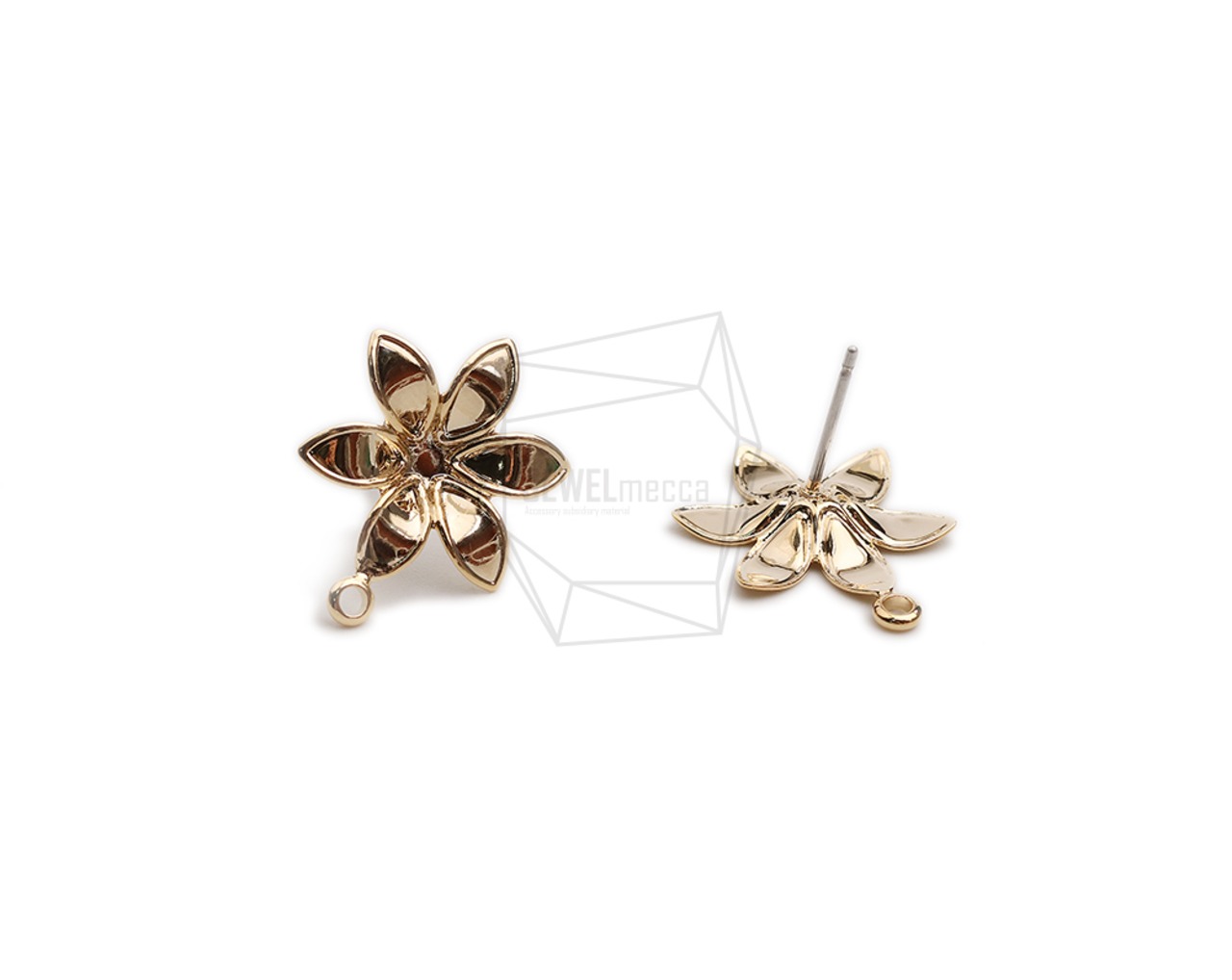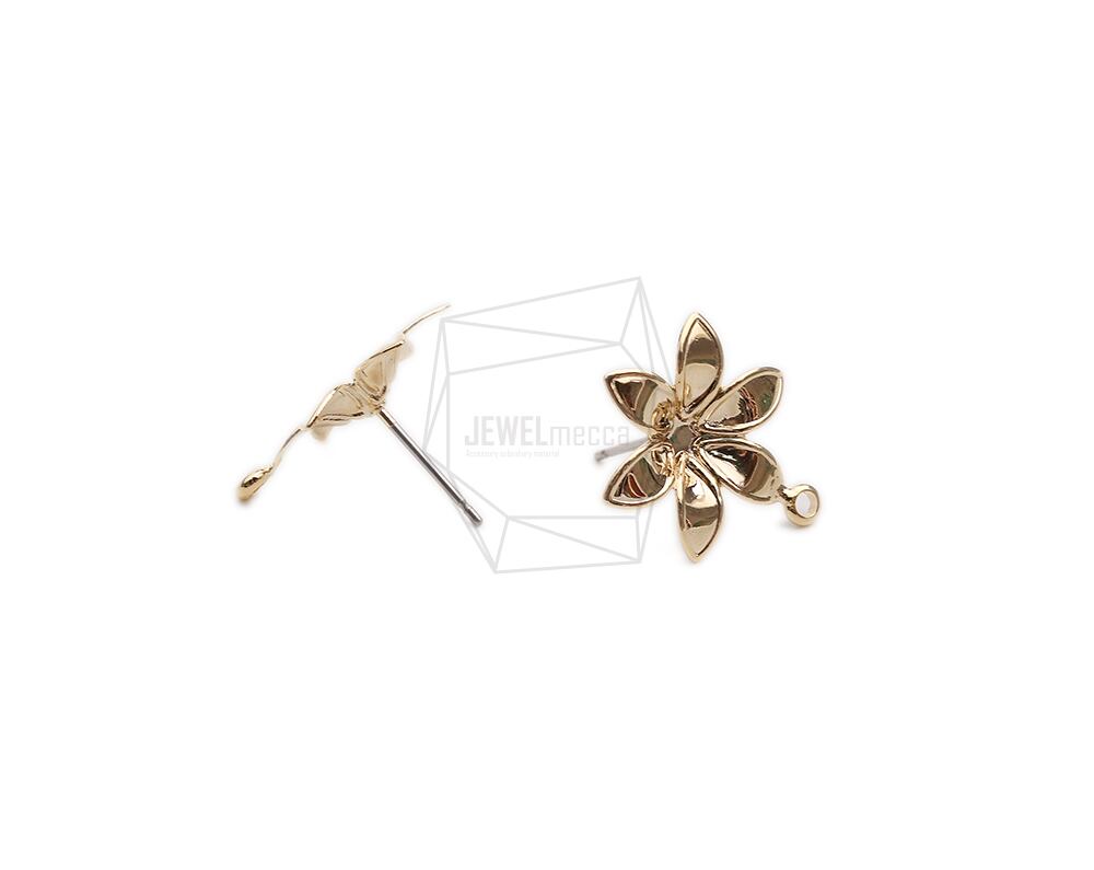 ERG-2375-G/2PCS/Flower Post Earring/15.2mm X 20.2mm/Gold Plated Over Tin,Stainless Post
