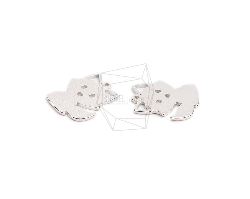 PDT-2677-R/2Pcs-Cat Pendant/ 15.2mmx16.8mm /Rhodium Plated over brass