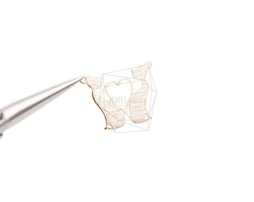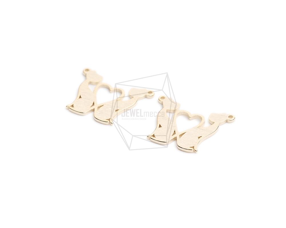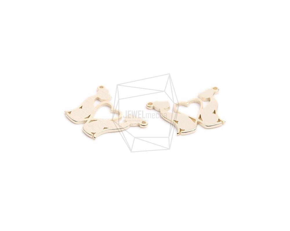PDT-2678-G/2Pcs-Heart Cat Pendan/ 14.4mmx18.8mm /Gold Plated over brass
