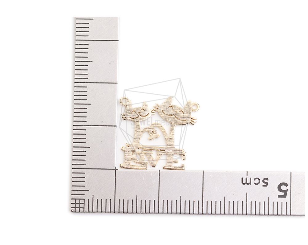 PDT-2679-G/2Pcs-Love Cat Pendan/ 17mmx18mm /Gold Plated over brass