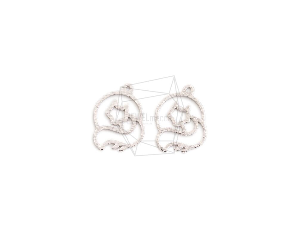 PDT-2683-R/2Pcs-Fox Pendan/ 12mmx16.3mm /Rhodium Plated over brass