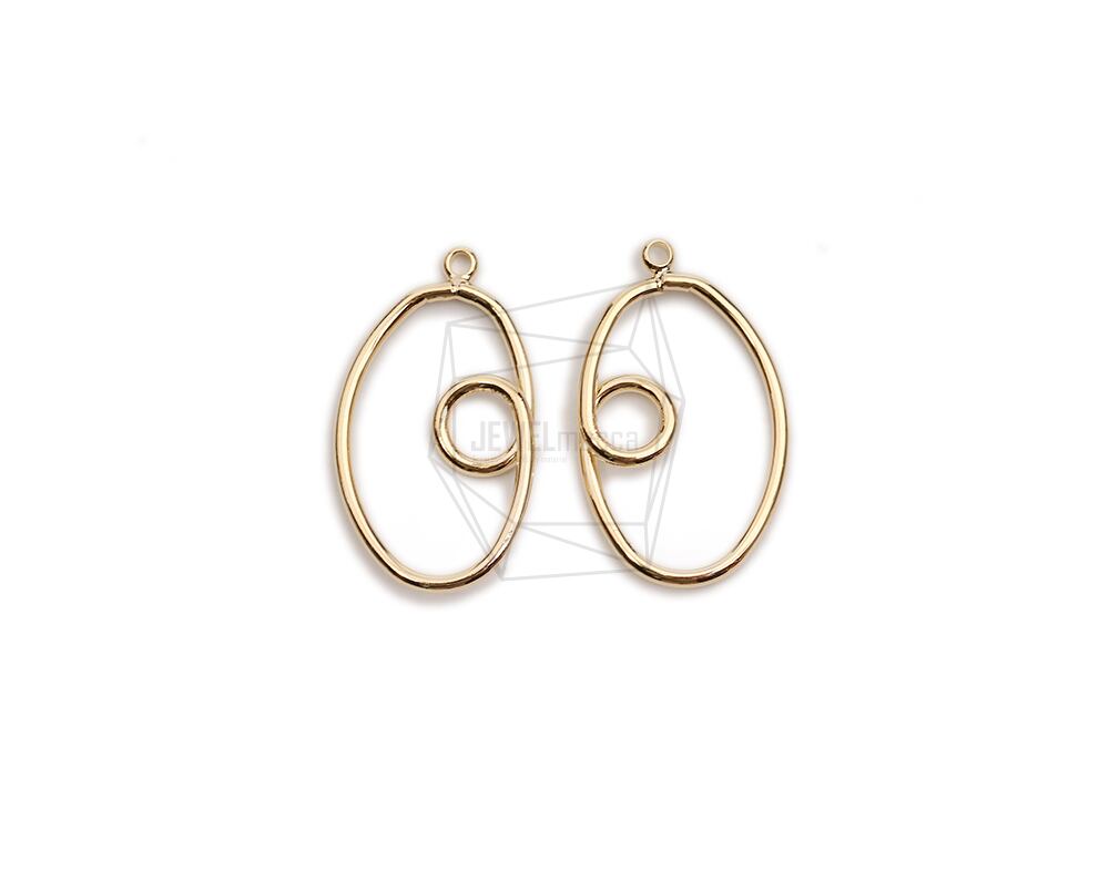 PDT-2686-G/2PCS/Double Round Earring Charm/ 16.3mm X 28.3mm/Gold Plated Over Brass