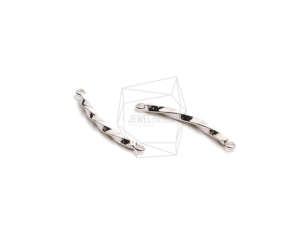 PDT-2690-R/2PCS/twist Curvy Bar Pendant/2.6mm x 33mm/Rhodium Plated Over Brass